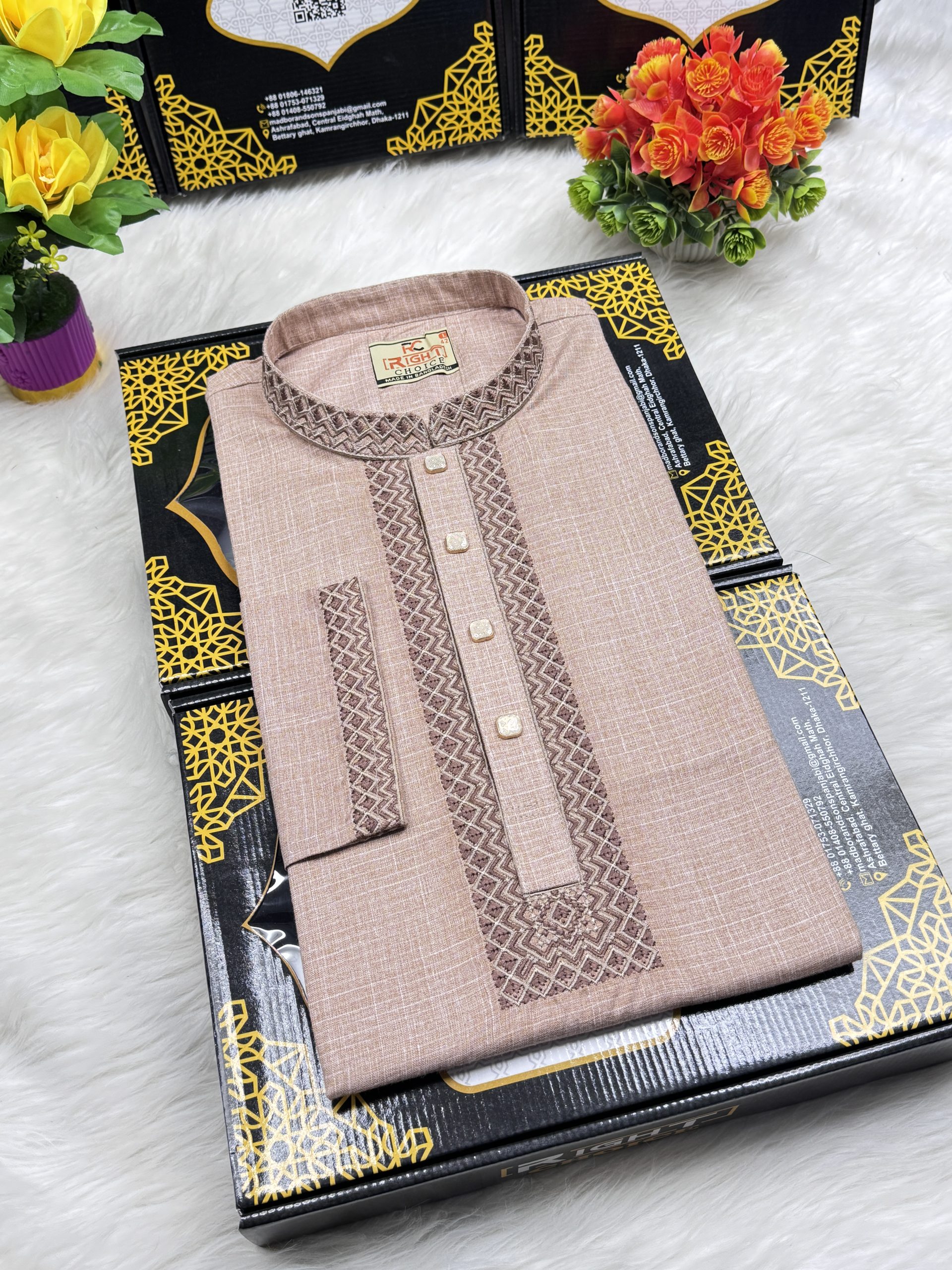 রুচিশীল স্টাইল, ন্যাচারাল কমফোর্ট আর ক্লাসিক এলিগেন্সের সুন্দর সমন্বয়ে তৈরি Khadi Cotton Embroidery Panjabi — যেখানে প্রতিটি ডিটেইলে ফুটে উঠেছে প্রিমিয়াম ফিনিশিং ও আভিজাত্য।