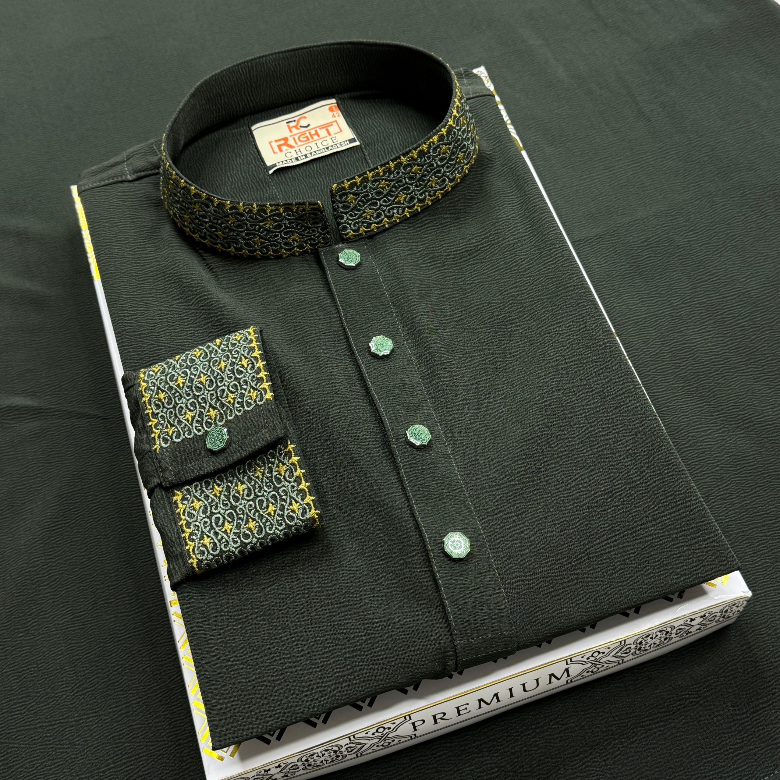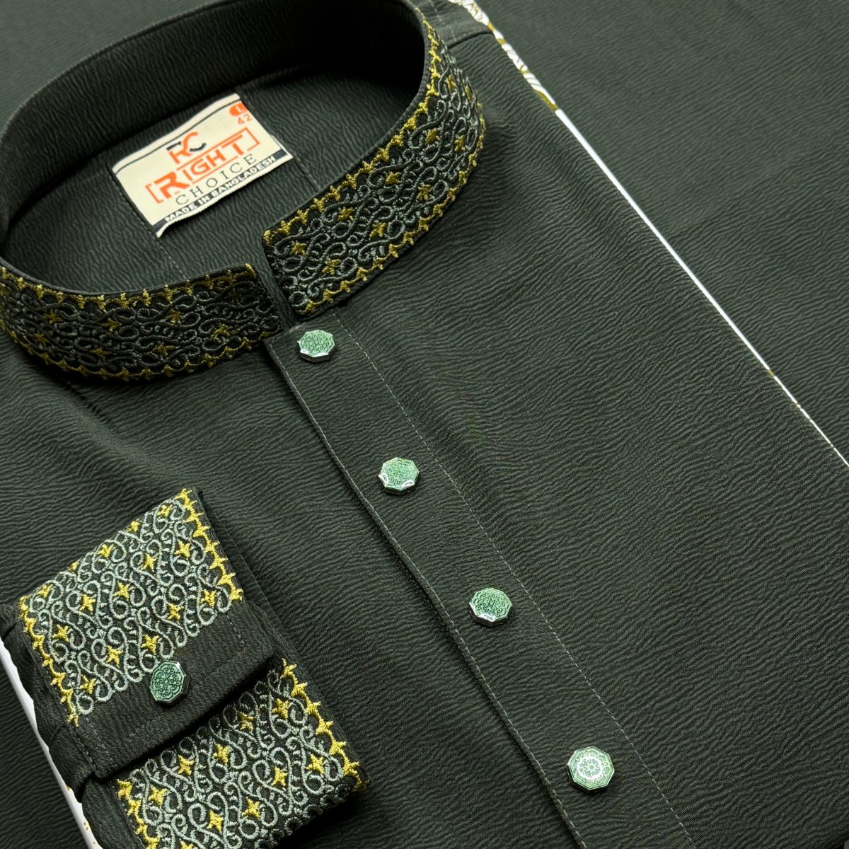 কারুকার্য পাঞ্জাবিটিতে রয়েছে চমৎকার  হাতা কলার ডিজাইন কাজ, যা এটিকে একটি প্রিমিয়াম লুক দেয়।