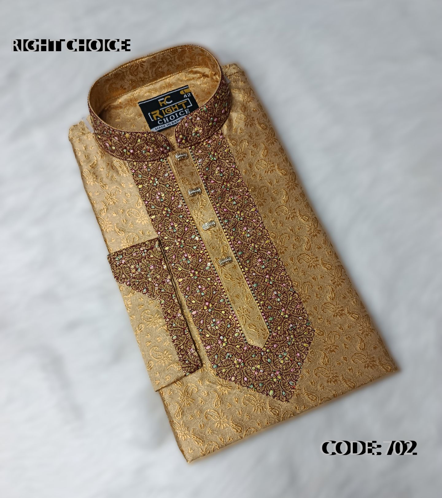- ব্যবহার করা হয়েছে উচ্চমানের কাতান ফেব্রিক, যা পরতে আরামদায়ক এবং দেখতে রাজকীয়।