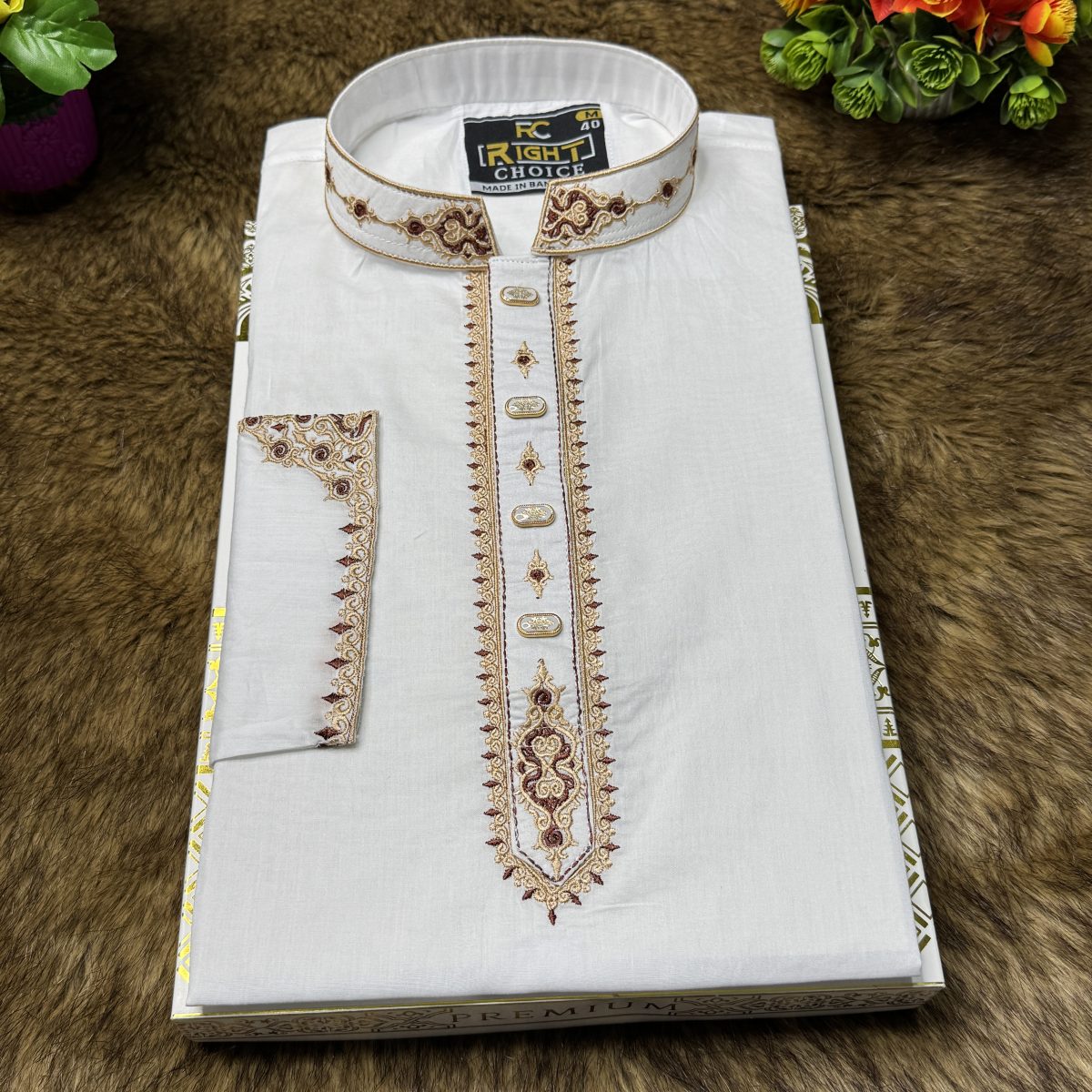 •  ধুতি পাঞ্জাবির এই নকশাটি পারফেক্ট জুমা, ঈদ, ঘরোয়া অনুষ্ঠান কিংবা গেট টুগেদার-এর জন্য।