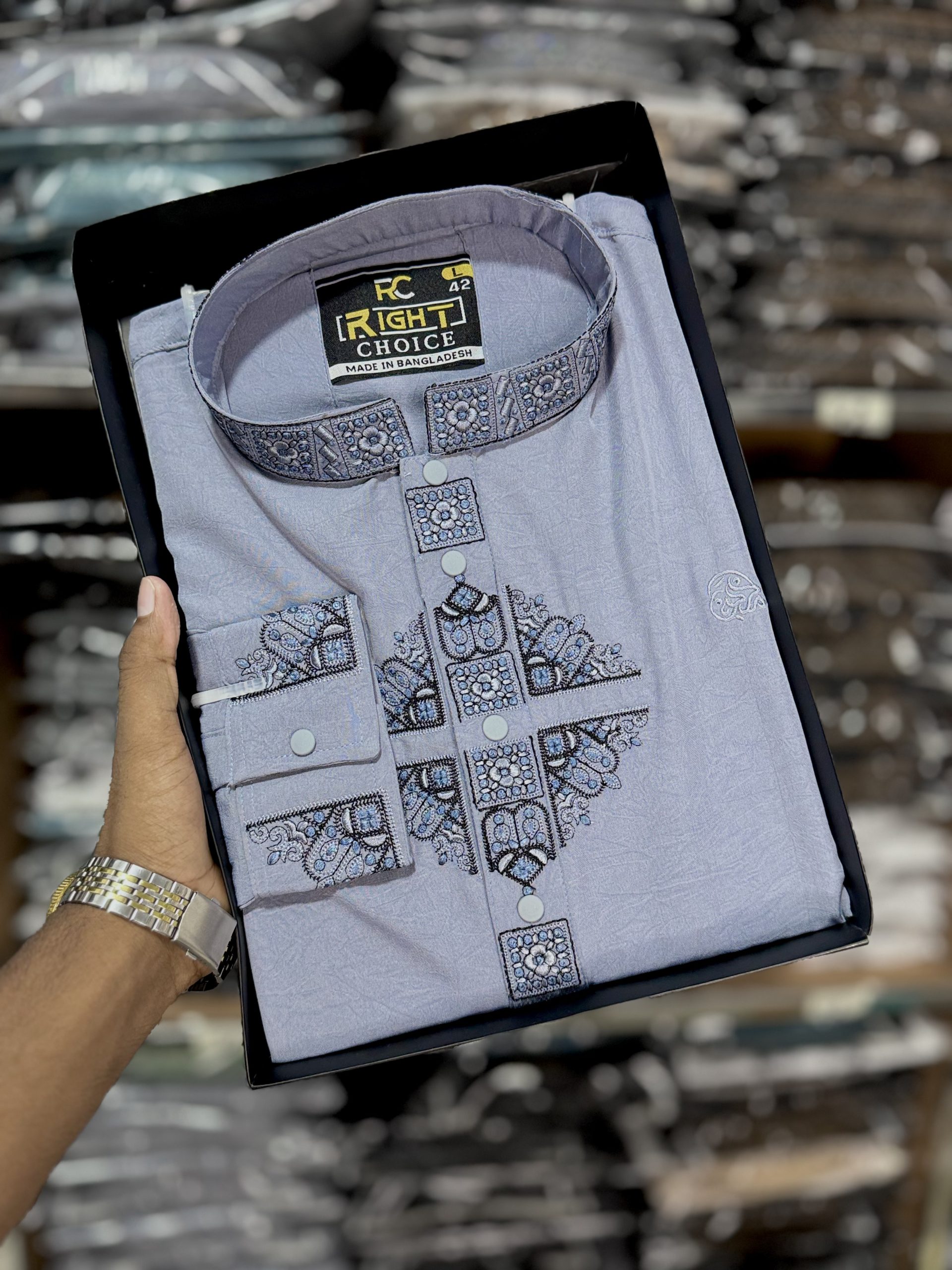 Stretch Embroidery Panjabi – তৈরি হয়েছে উন্নতমানের স্ট্রেচ ফেব্রিকে, যা সফট, লাইটওয়েট এবং পরতে আরামদায়ক।