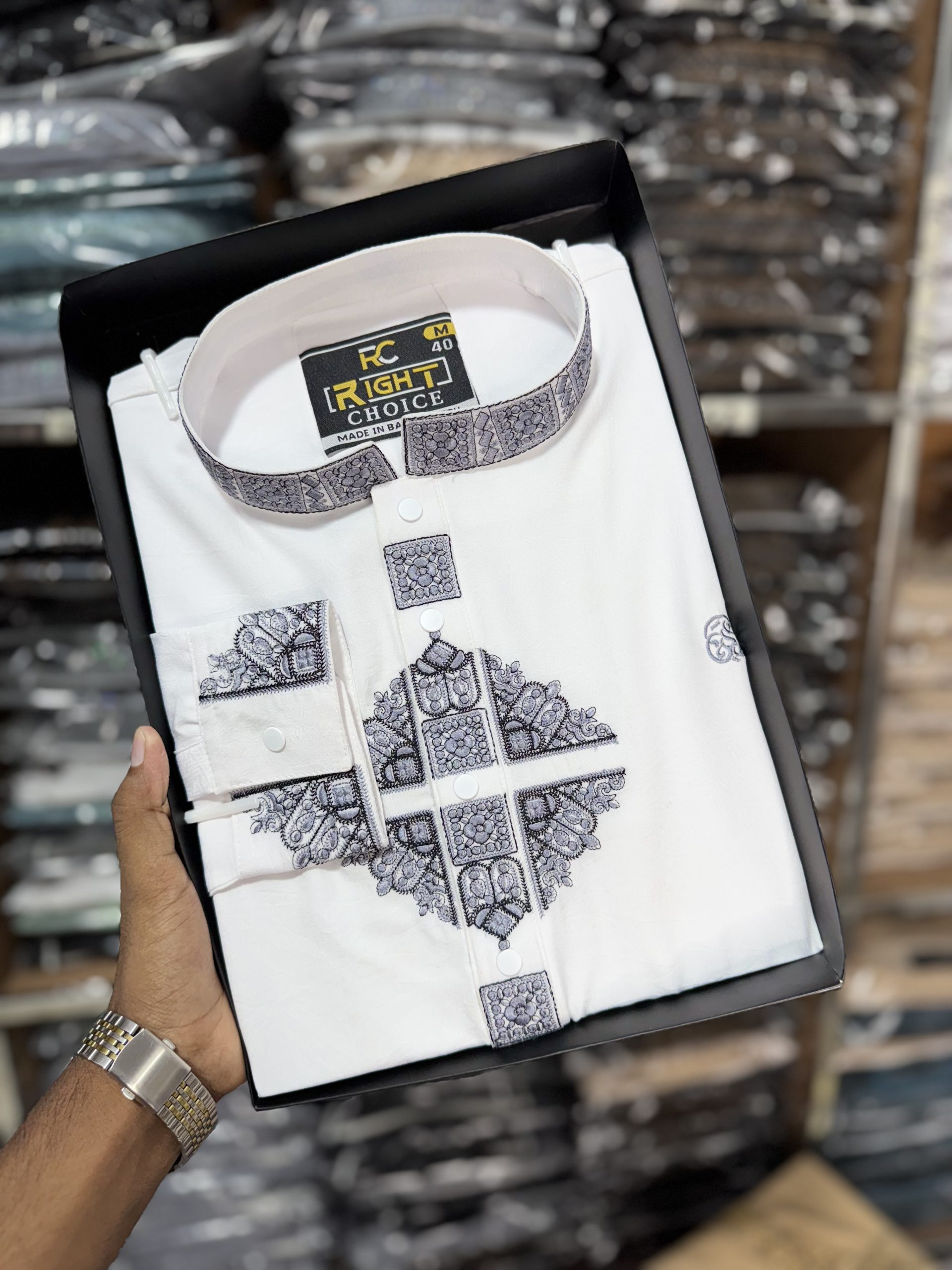 Stretch Embroidery Panjabi – তৈরি হয়েছে উন্নতমানের স্ট্রেচ ফেব্রিকে, যা সফট, লাইটওয়েট এবং পরতে আরামদায়ক।