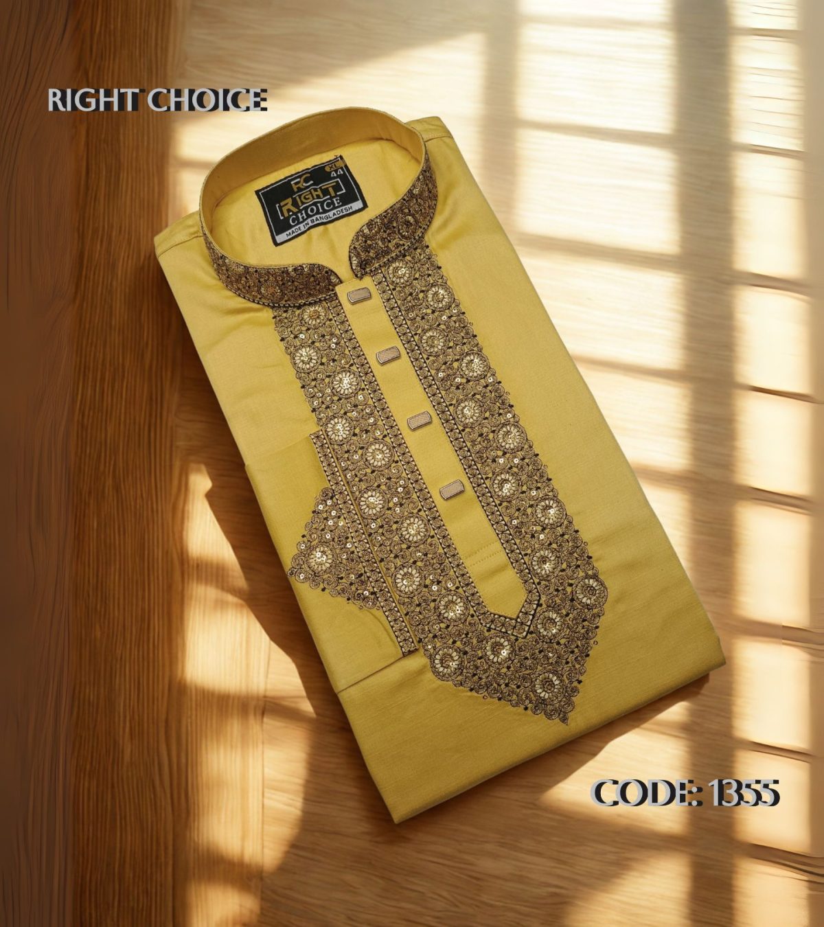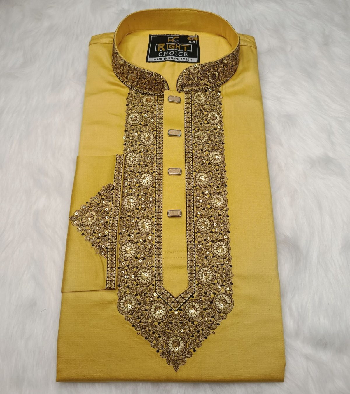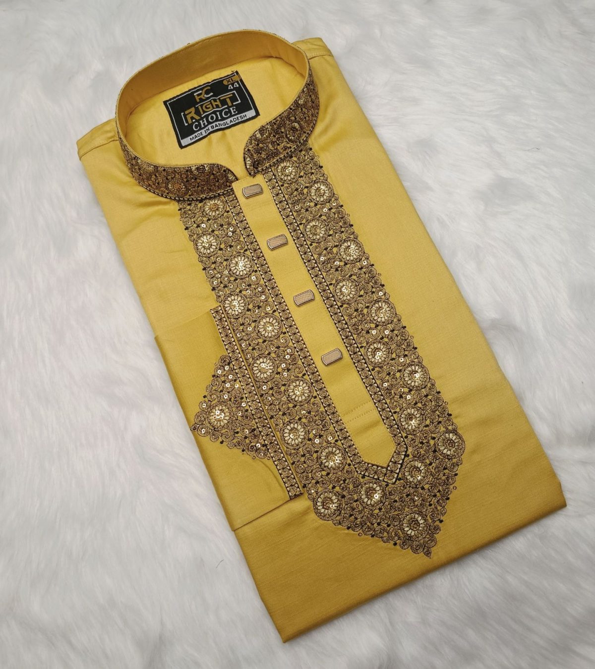 পাঞ্জাবিটি তৈরি করা হয়েছে উন্নতমানের Cotton Fabric-এ, যাতে রয়েছে সূক্ষ্ম ও আকর্ষণীয় Sequence Embroidery কাজ। সঙ্গে ব্যবহার করা হয়েছে ম্যাচিং প্রিমিয়াম Snap Button, যা পুরো লুকে যুক্ত করেছে বাড়তি মান ও সৌন্দর্য।