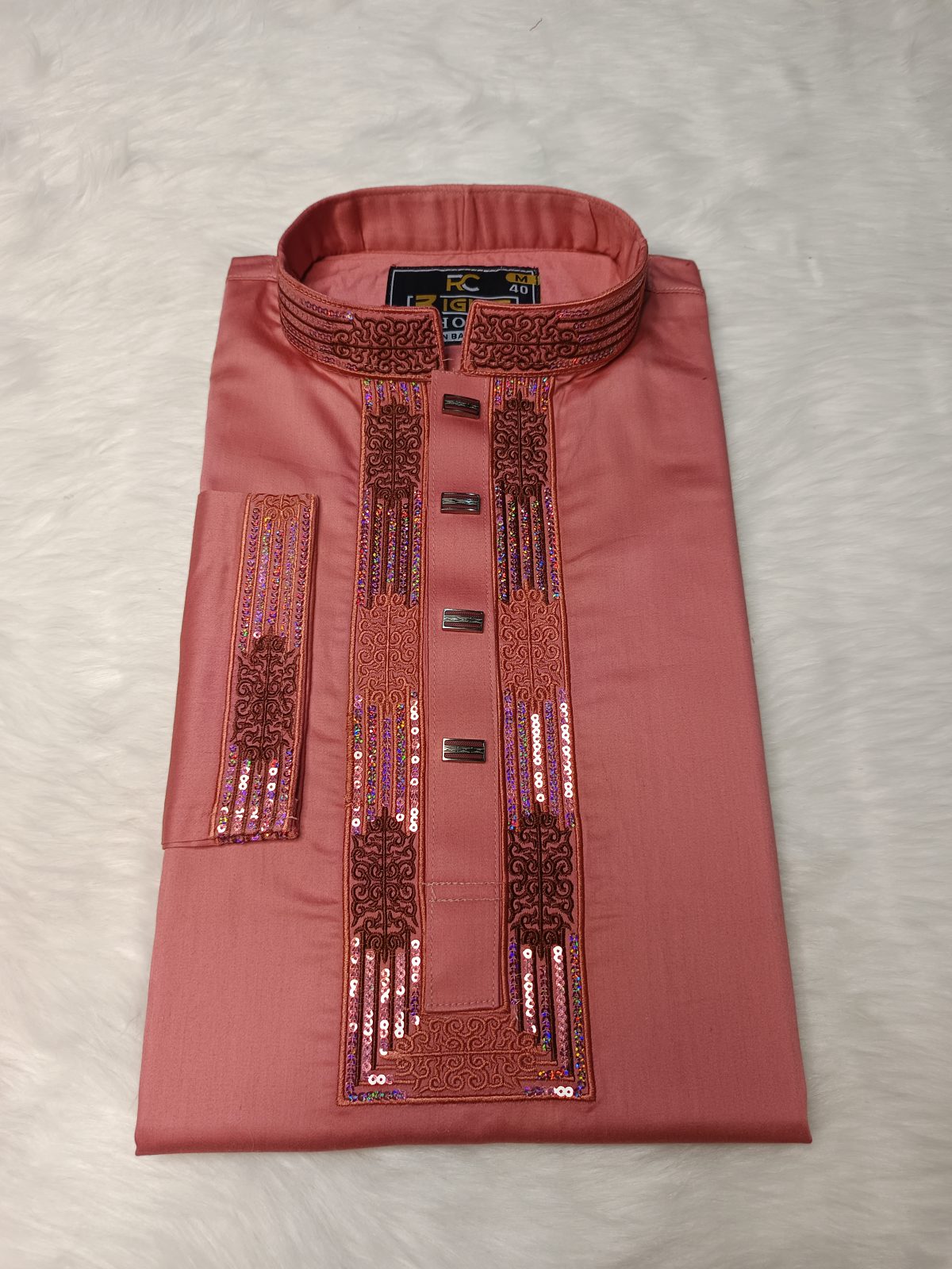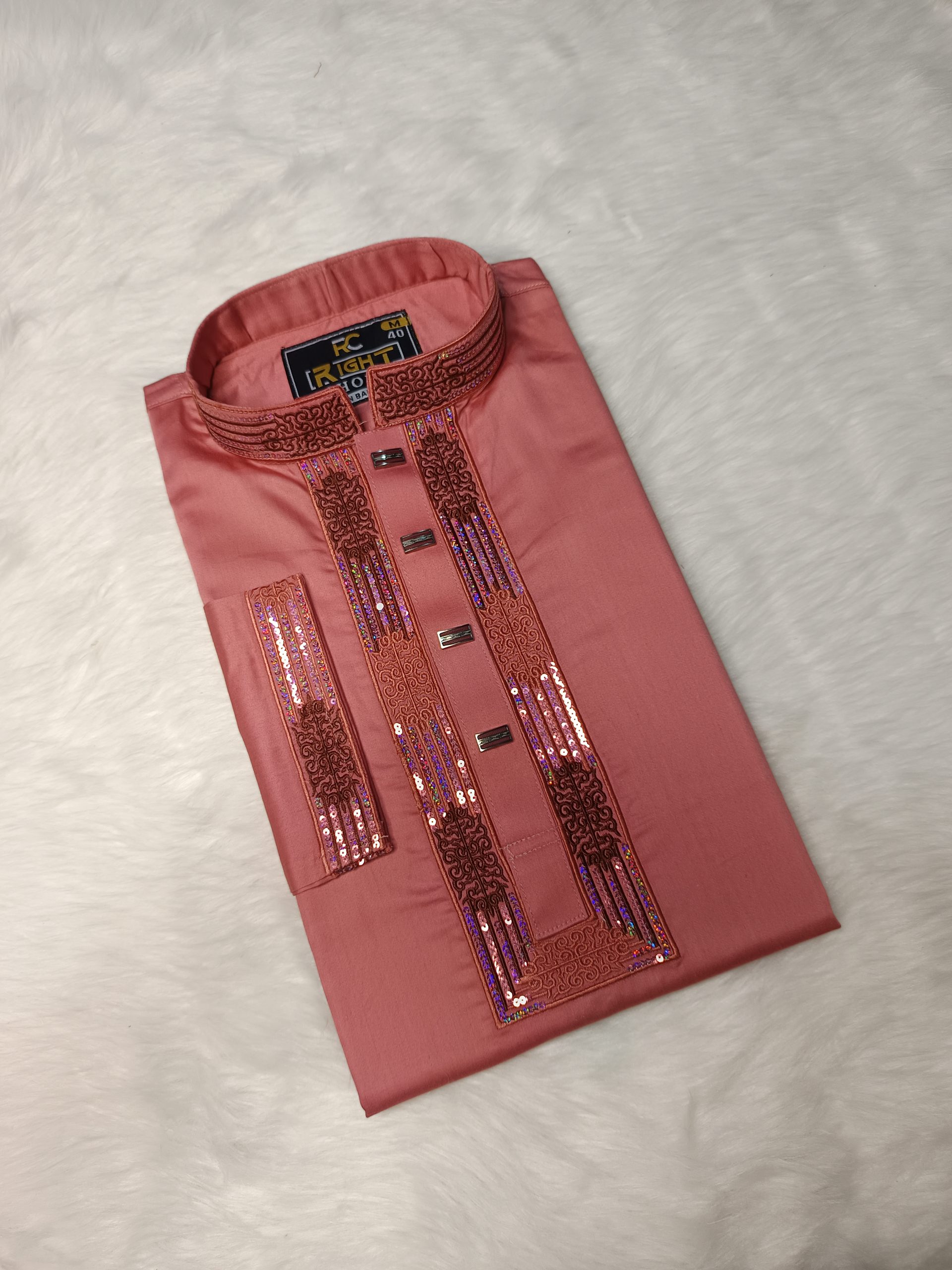 পাঞ্জাবিটি তৈরি করা হয়েছে উন্নতমানের Cotton Fabric-এ, যাতে রয়েছে সূক্ষ্ম ও আকর্ষণীয় Sequence Embroidery কাজ। সঙ্গে ব্যবহার করা হয়েছে ম্যাচিং প্রিমিয়াম Snap Button, যা পুরো লুকে যুক্ত করেছে বাড়তি মান ও সৌন্দর্য।