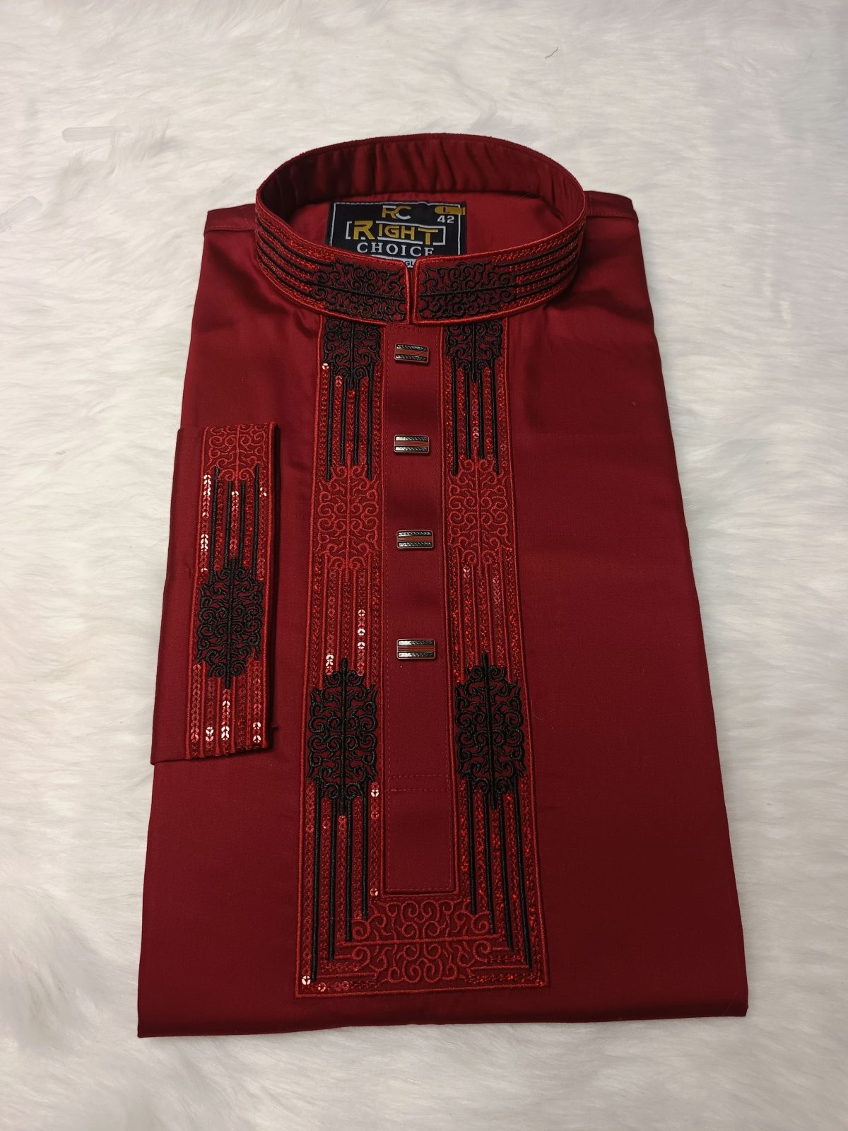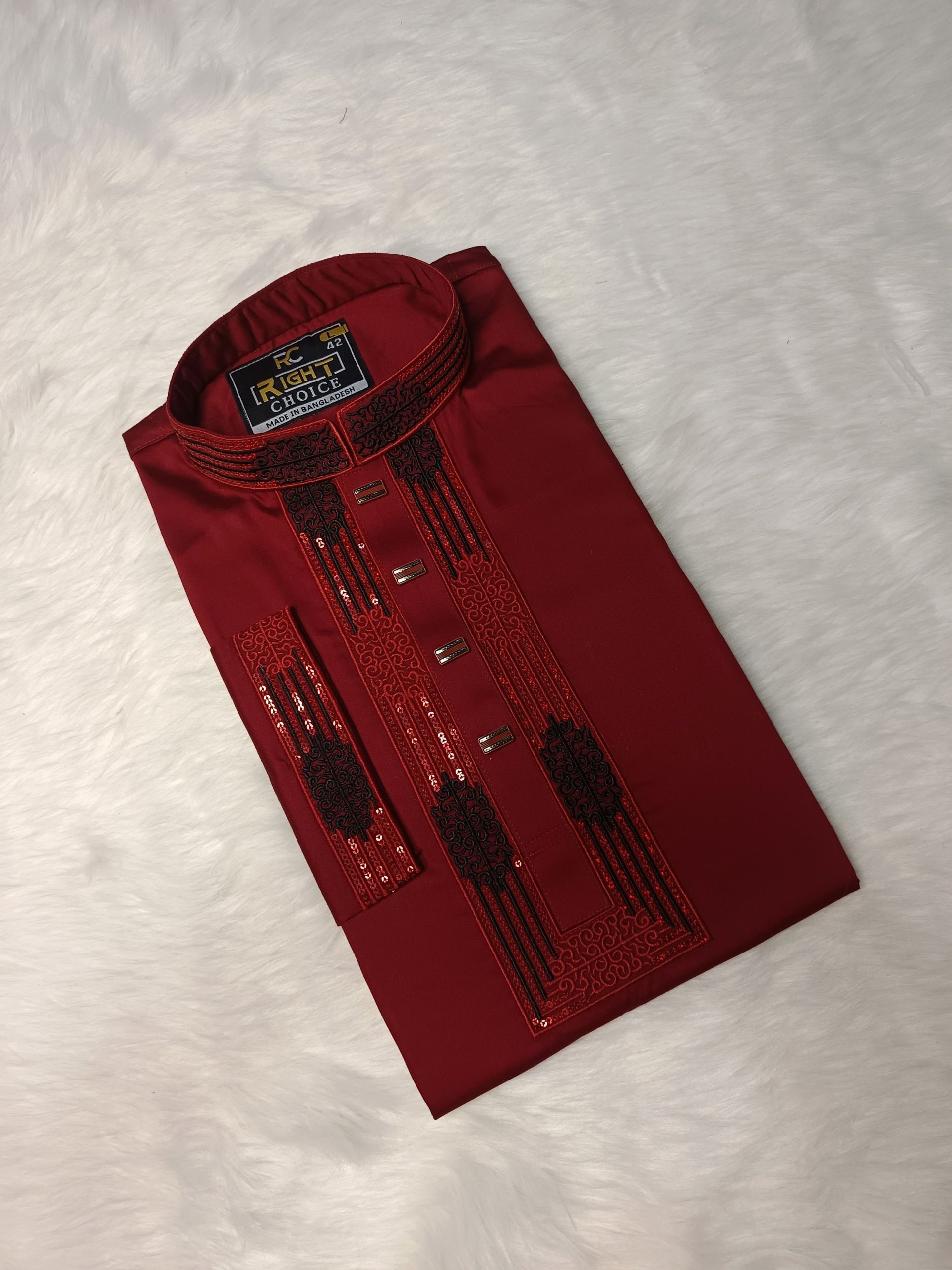 পাঞ্জাবিটি তৈরি করা হয়েছে উন্নতমানের Cotton Fabric-এ, যাতে রয়েছে সূক্ষ্ম ও আকর্ষণীয় Sequence Embroidery কাজ। সঙ্গে ব্যবহার করা হয়েছে ম্যাচিং প্রিমিয়াম Snap Button, যা পুরো লুকে যুক্ত করেছে বাড়তি মান ও সৌন্দর্য।