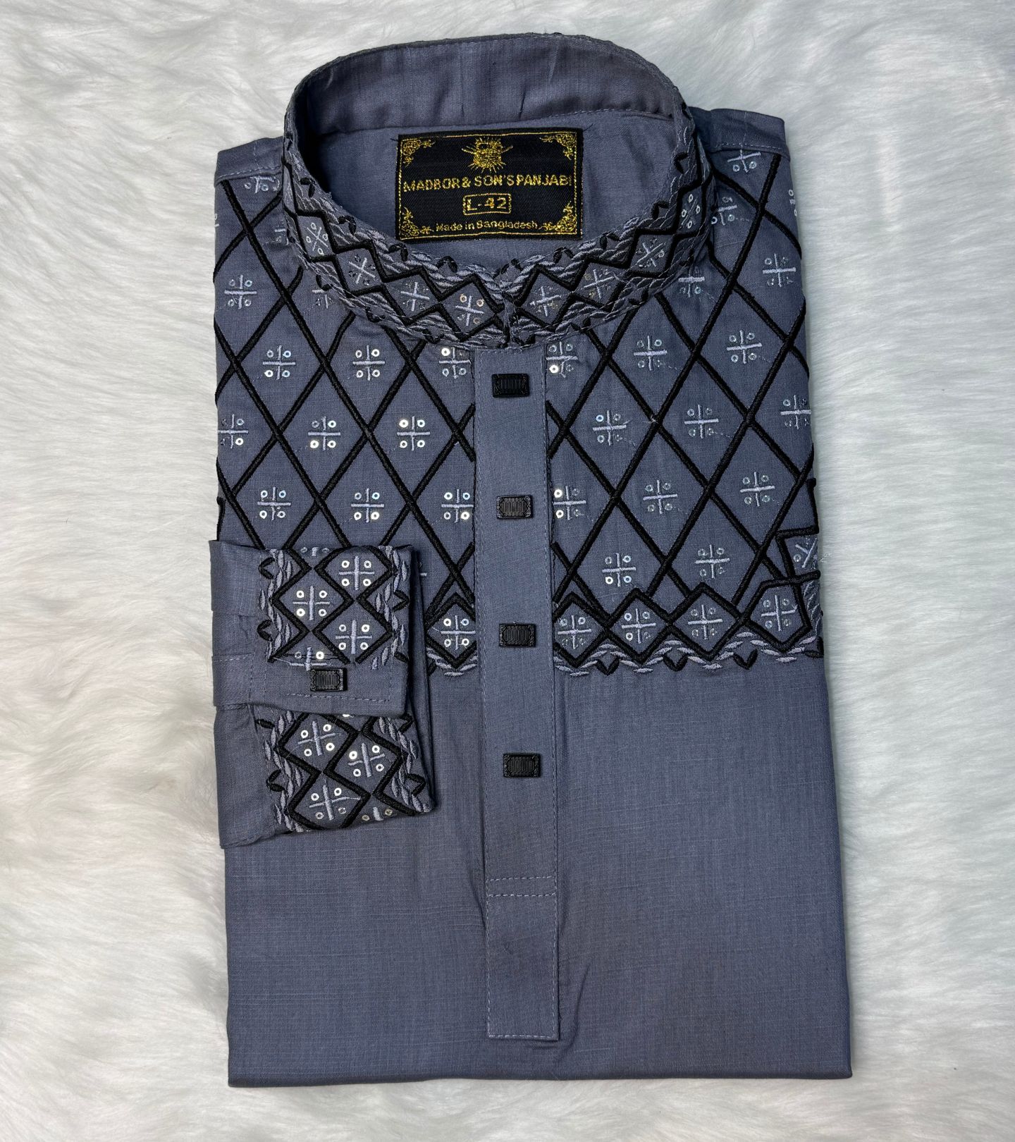 Slub Sutton Panjabi – তৈরি হয়েছে উন্নতমানের স্লাব সাটন কটন কাপড়ে, যা হালকা, সফট এবং স্কিন-ফ্রেন্ডলি।