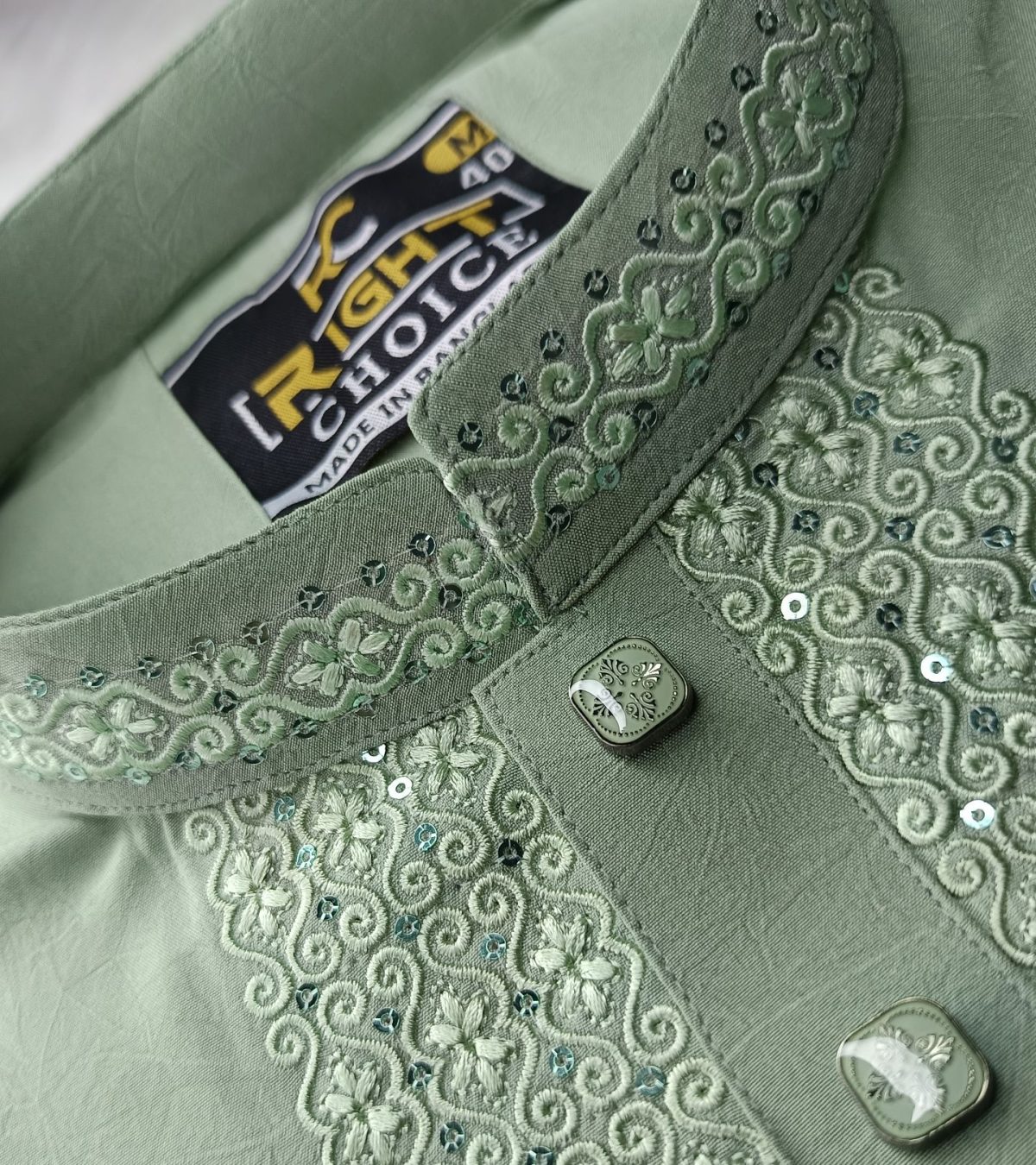 ☑️ সামনে ও হাতায় সূক্ষ্ম সিকুয়েন্স এমব্রয়ডারি ডিজাইন।