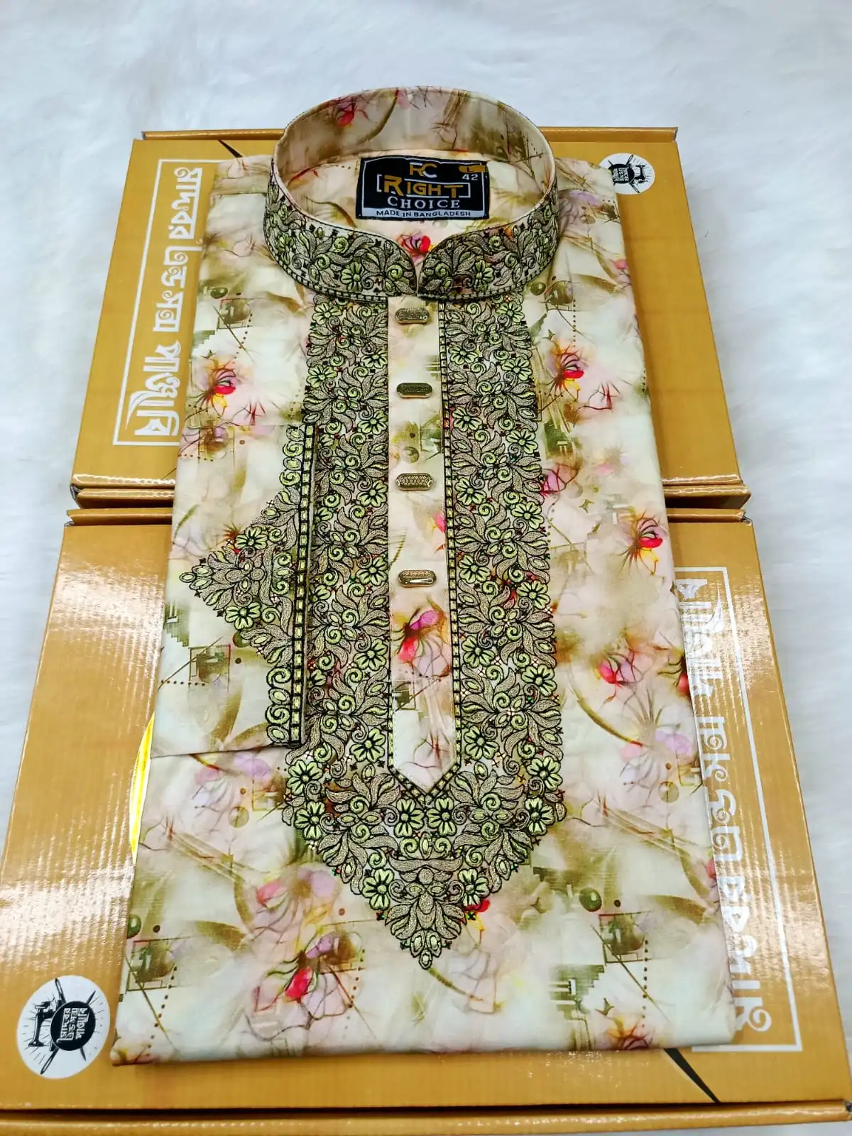 • রিজেনাবল প্রাইসে পাচ্ছেন এই প্রিমিয়াম ডিজাইনের Panjabi — শুধুমাত্র আমাদের কালেকশন থেকে।