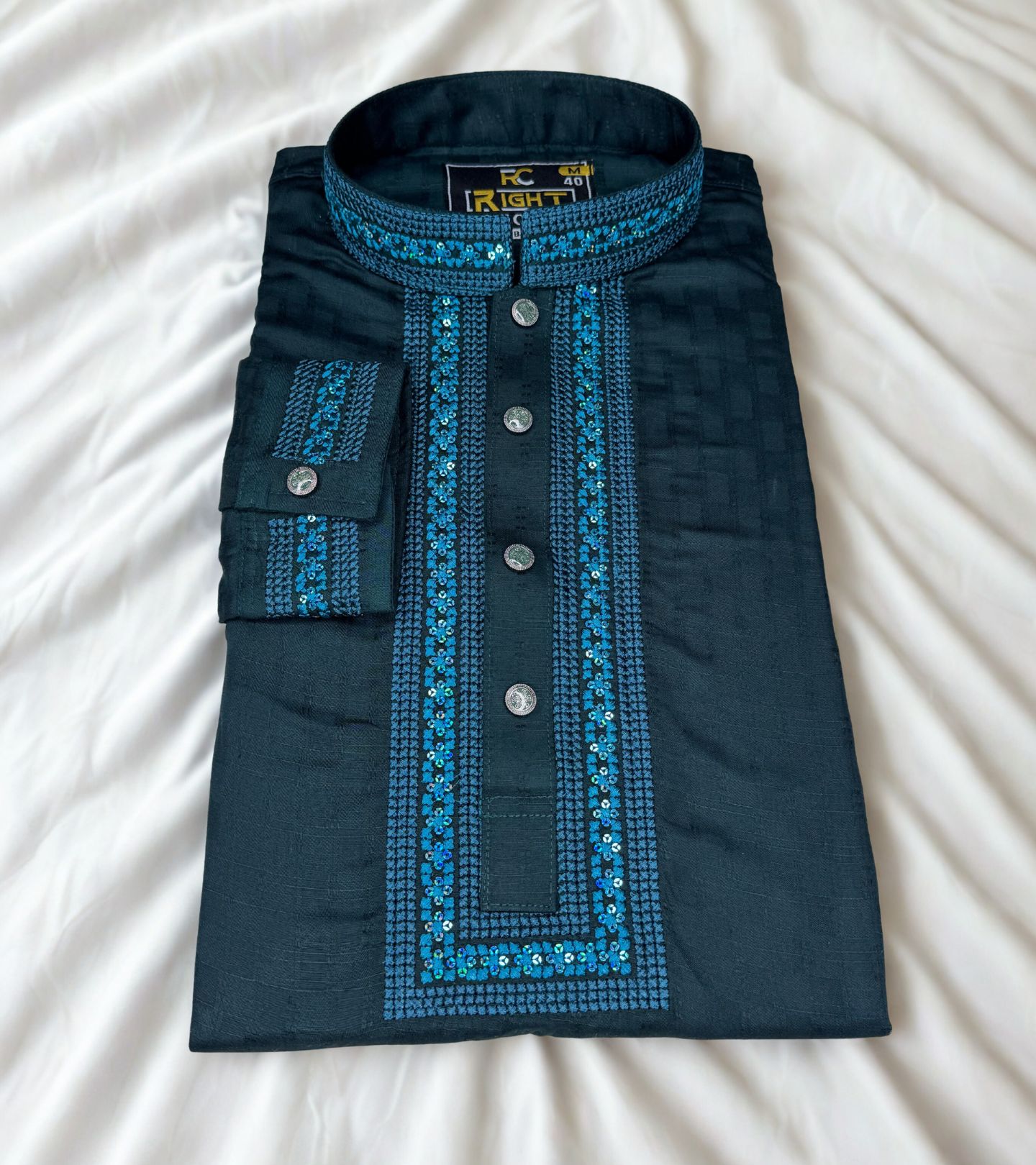 Luxury Sequence Panjabi – তৈরি হয়েছে প্রিমিয়াম ভিসকস কটন ফেব্রিকে, যেখানে রয়েছে সূক্ষ্ম সিকুয়েন্স এমব্রয়ডারির নিখুঁত কাজ।
